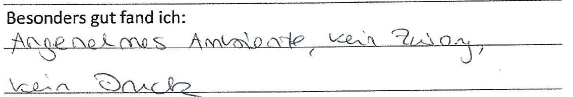 Angemehmes Ambiente, Kein Zwang, kein Druck